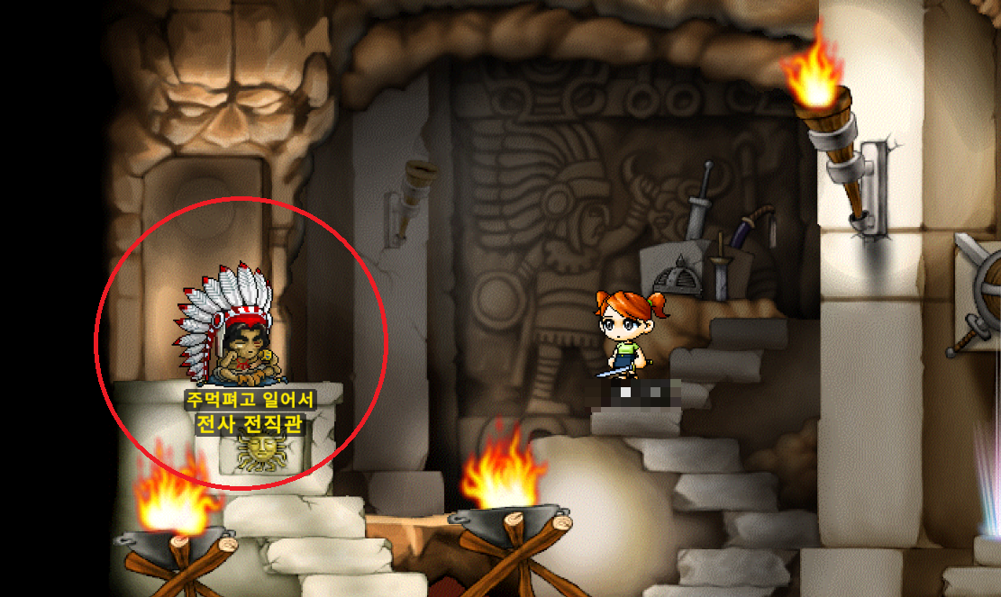 들어가면 맵이 넓지 않기 때문에 바로 전사 전직관 [주먹펴고 일어서]가 보입니다.
