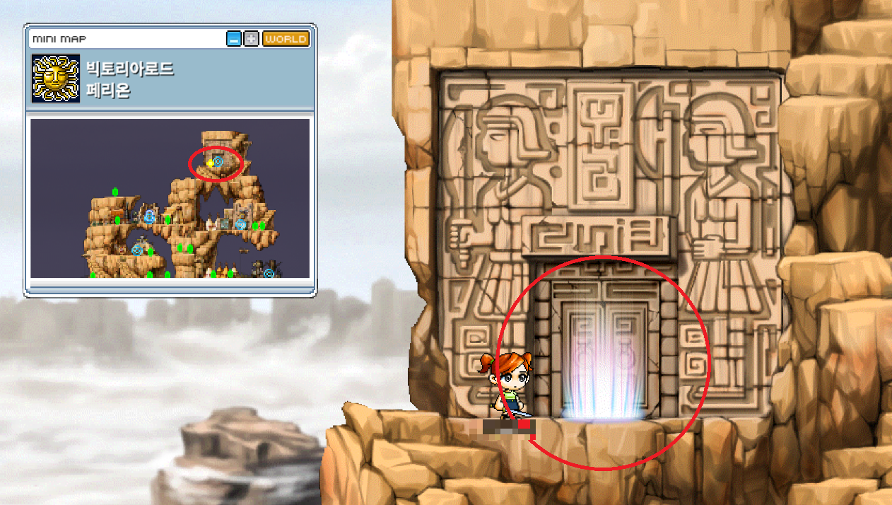 먼저 페리온의 가장 우측 꼭대기에 있는 포탈을 타고 건물 내부로 들어갑니다.