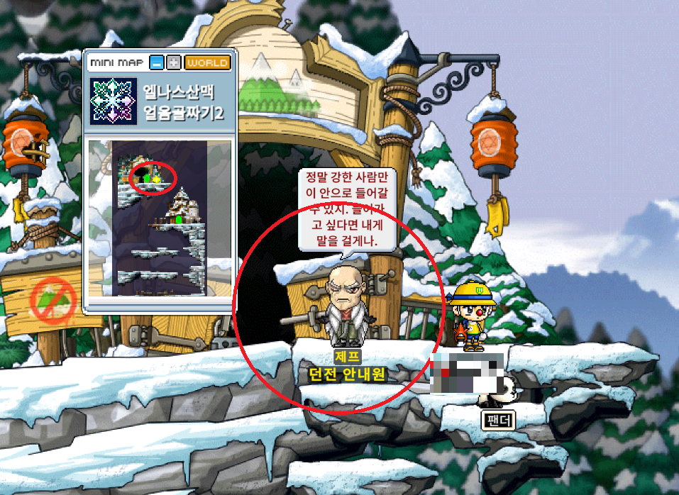 엘나스마을 우측에 있는 위험지역 총알택시를 타고 얼음골짜기2로 이동합니다. 45000메소가 필요합니다.