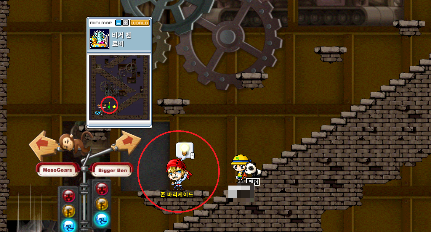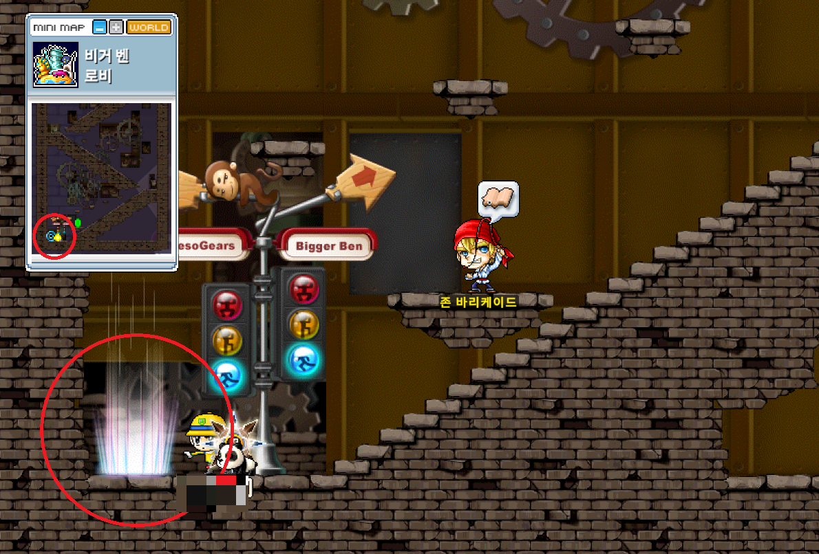 먼저 뉴 리프 시티 좌측으로 이동 후, 시계탑 가장 아래쪽에 있는 곰돌이 구조물 앞에서 히든포탈을 타면 건물 위쪽으로 타고 올라갈 수 있습니다.